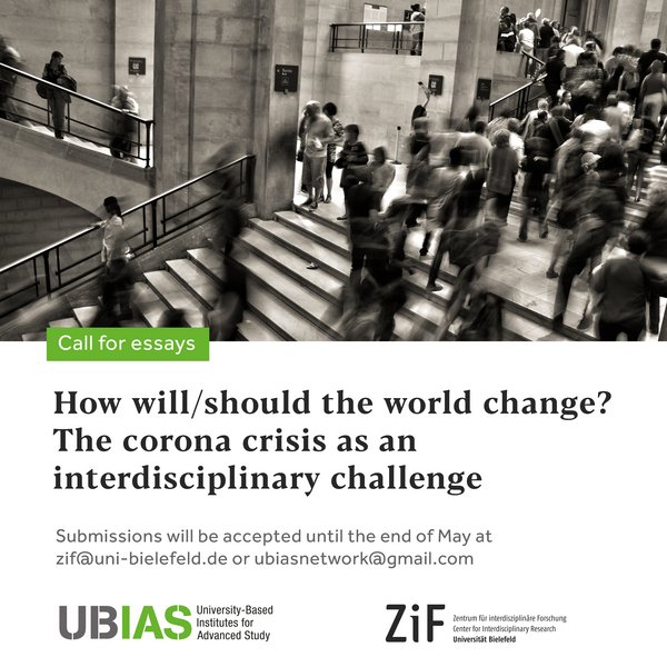 The global network for University-Based Institutes for Advanced Study, UBIAS, has an open call for essays on the theme ‘How will/should the world change? The corona crisis as an interdisciplinary challenge’.